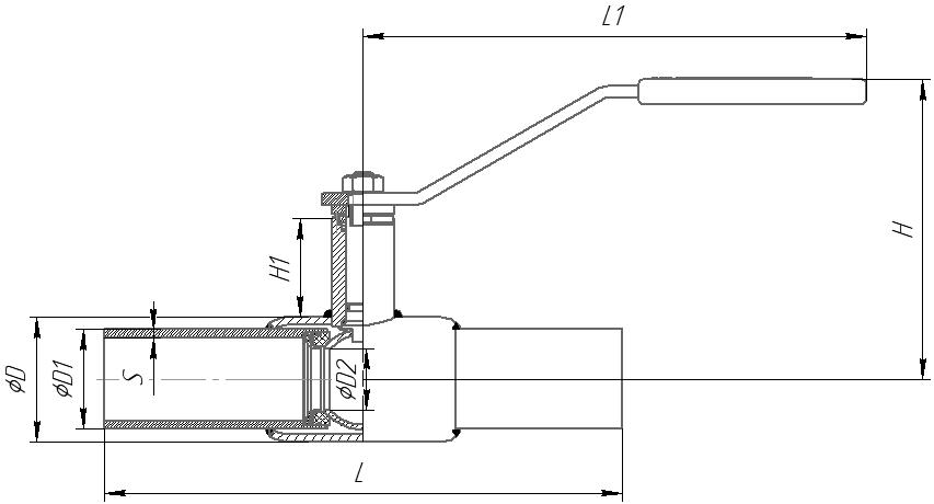 | Артикул | DN | PN | L | L1 | H | H1 | D | D1 | D2 | S | Вес, кг | |