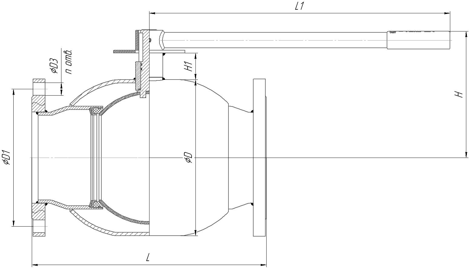 Артикул DN PN L L1 H H1 D D1 D2 D3 N OF HOLES Вес