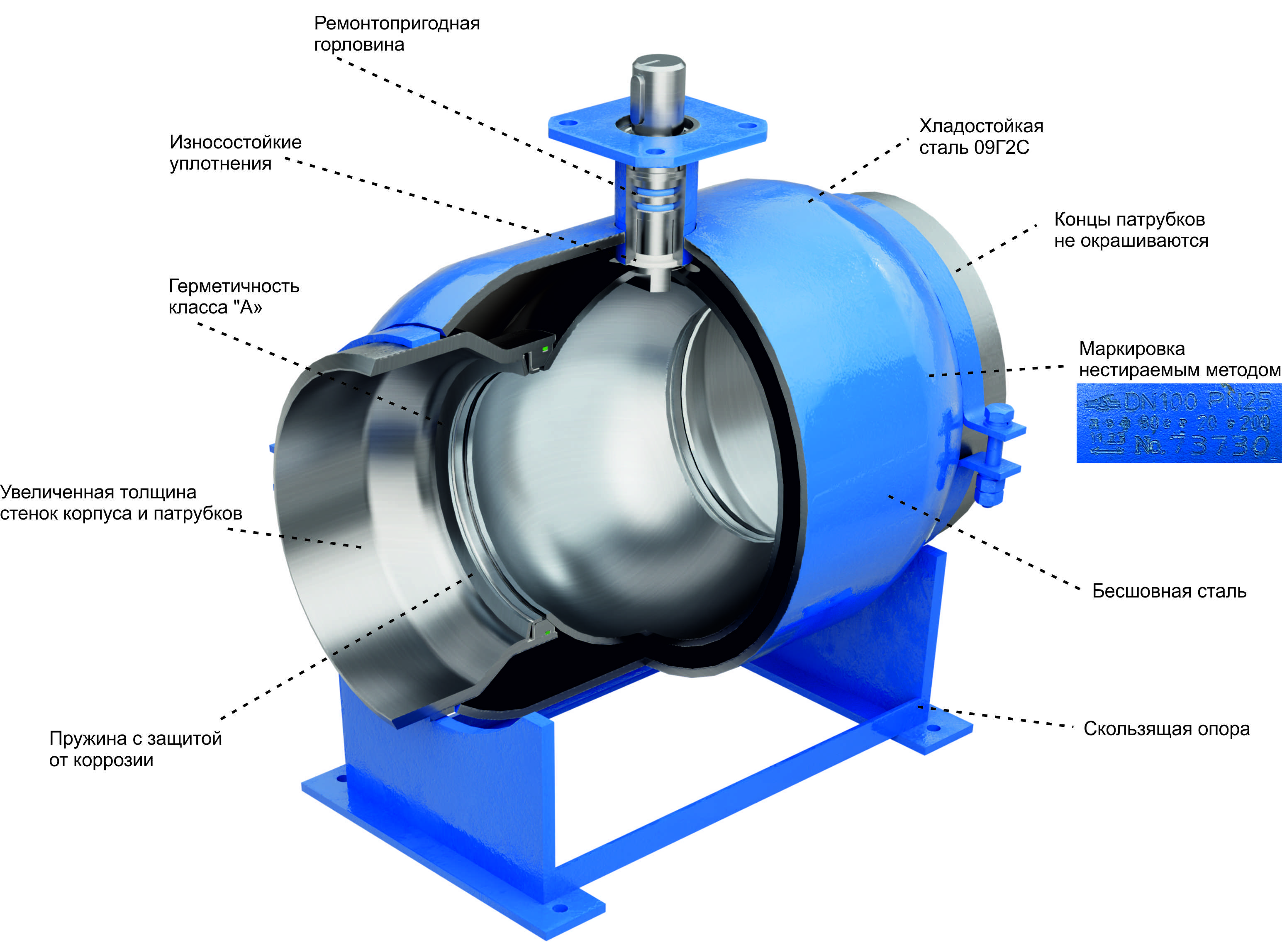 - Уникальная конструкция ремонтопригодной горловины с эффектом самоуплотнения позволяет восстановить уплотнения без демонтажа шарового крана