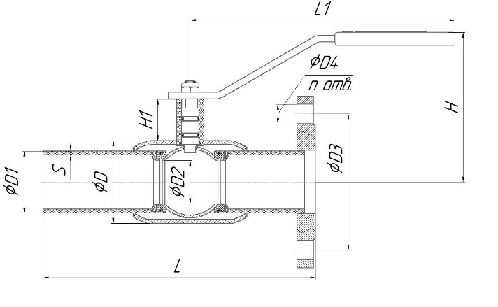 Артикул DN PN L L1 H H1 S d D D1 D2 D3 N OF HOLES