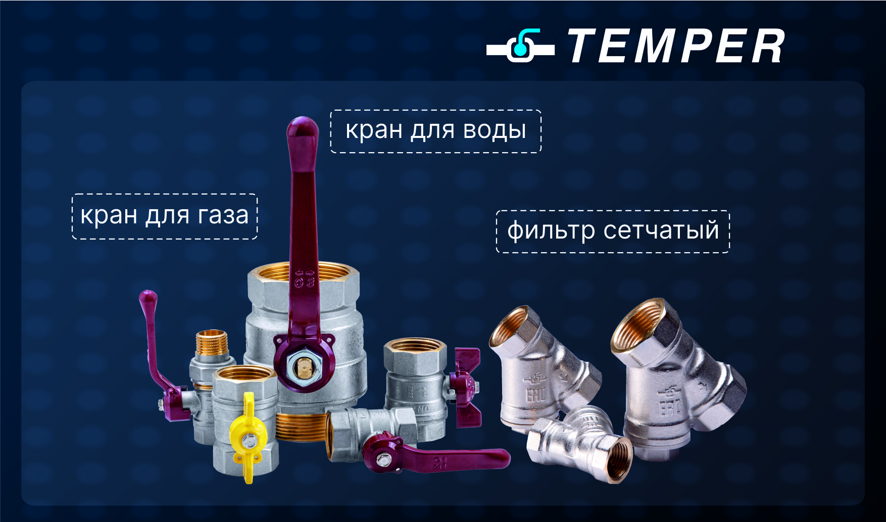 - латунные шаровые краны, от самых ходовых позиций DN 15-25 до больших DN 32-50.