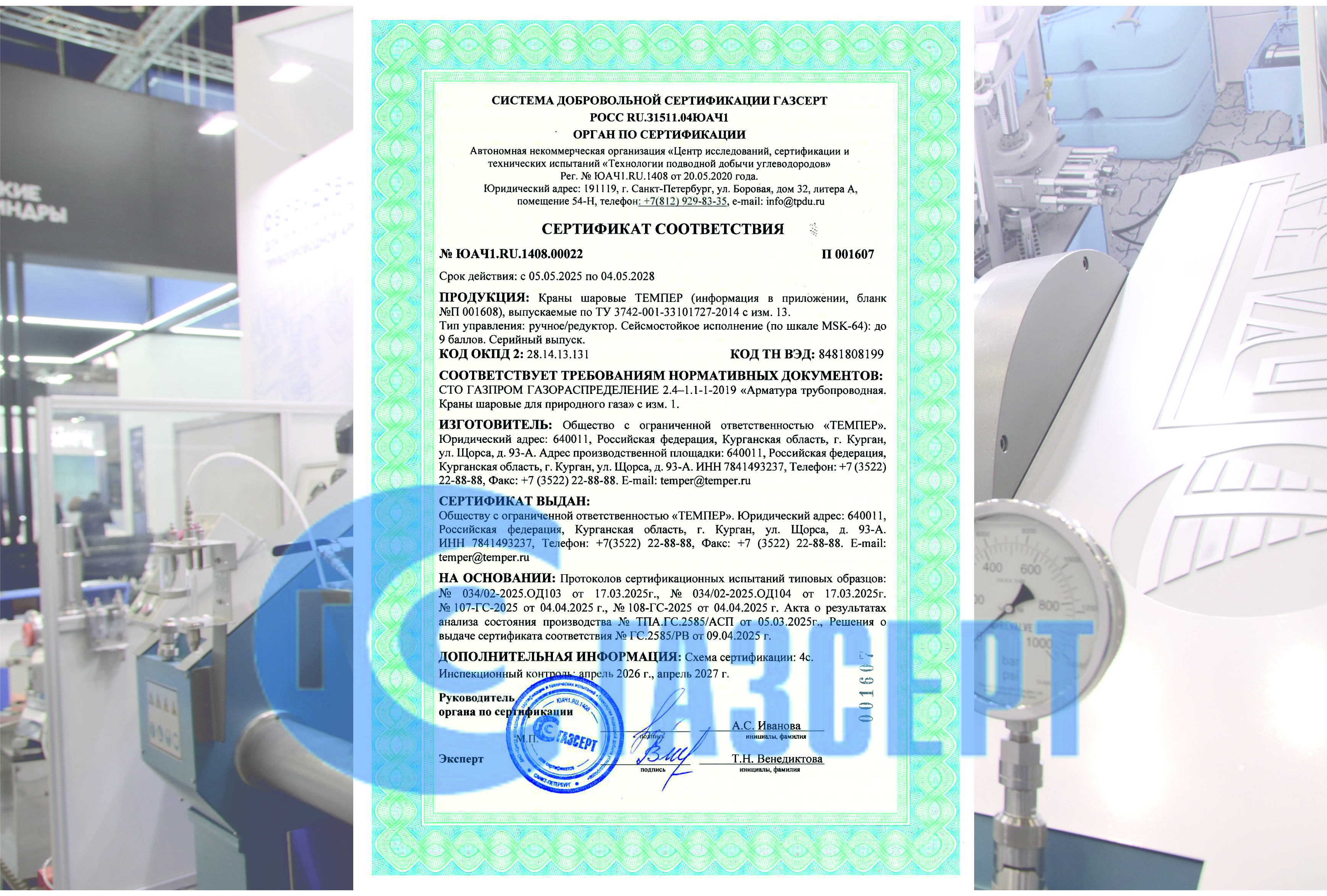 Стальные шаровые краны марки TEMPER газовой серии подтвердили соответствие системе добровольной сертификации ГАЗСЕРТ после проведенных испытаний и выполненных работ. Новый сертификат соответствия будет действовать до 2028 года.