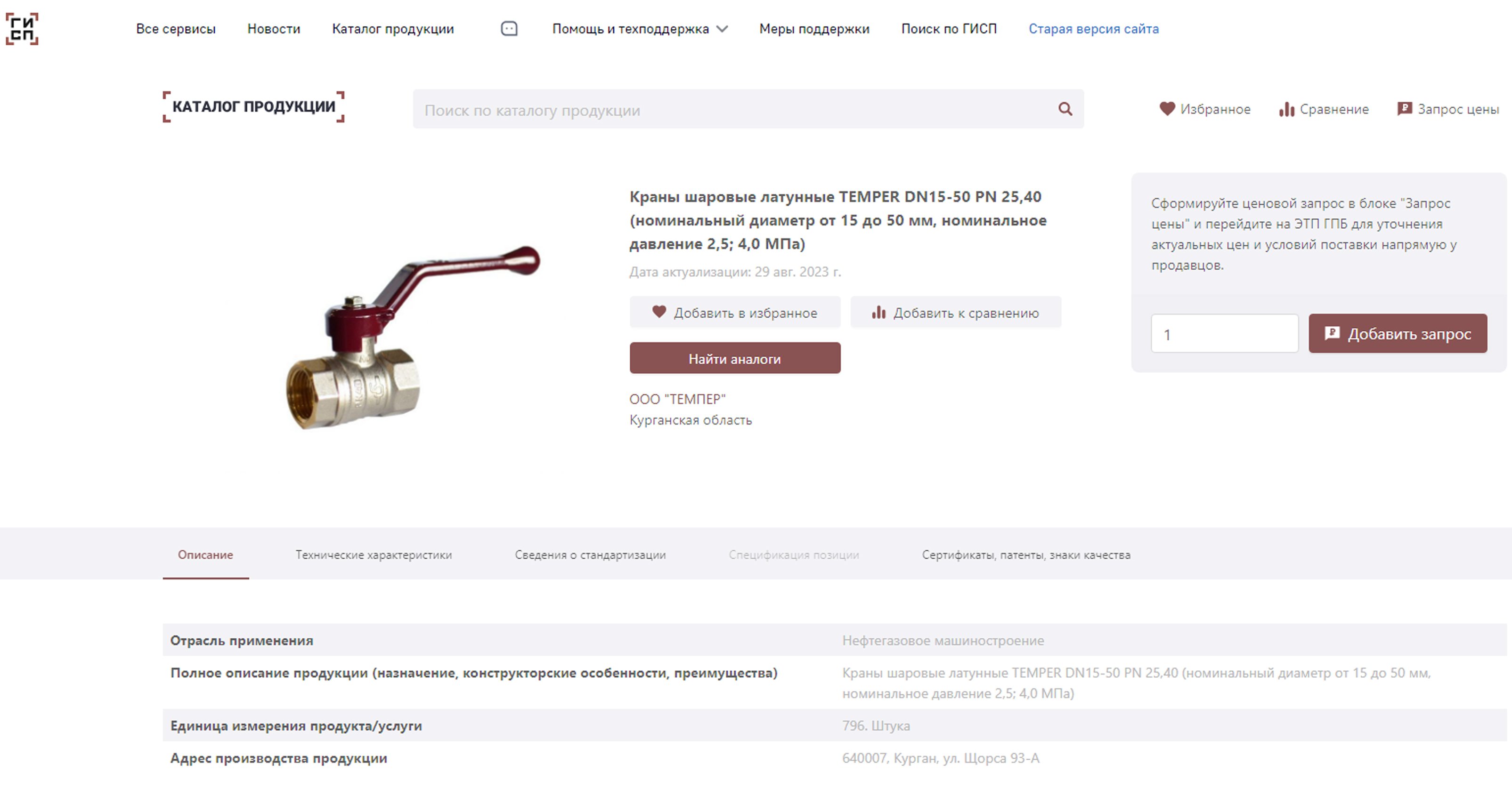 Система ГИСП помогает производителям расширять рынок сбыта, а покупателям - быстро находить нужную продукцию и упрощает проведение закупочных процедур. В каталоге ГИСП более 1,3 млн позиций. Помимо продукции на сайте ГИСП можно увидеть описание предприятия, полный каталог его продукции, сравнить и добавить в избранное интересующие позиции.