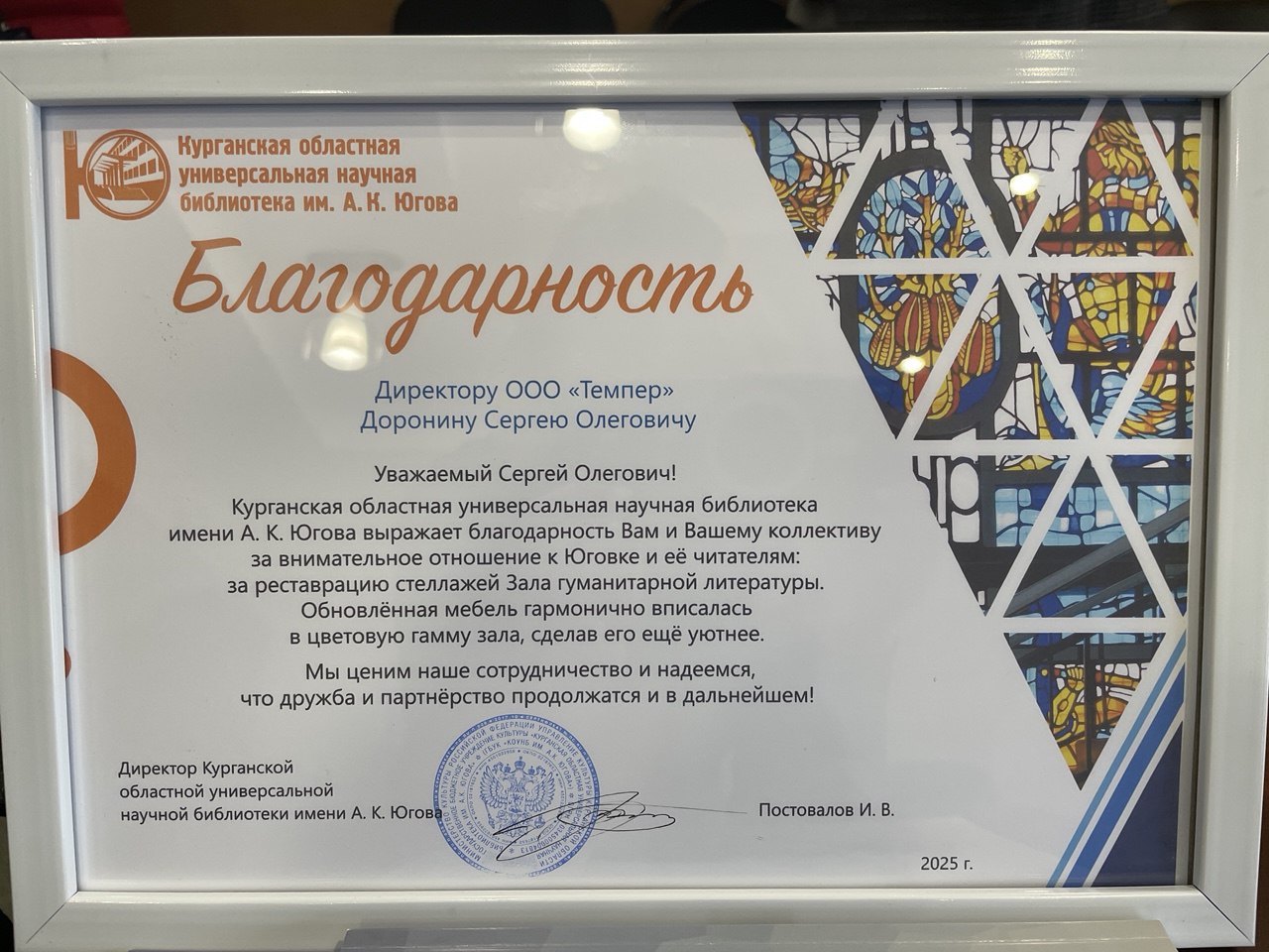 Завод "ТЕМПЕР" помог обновить стеллажи для курганской библиотеки им. Югова